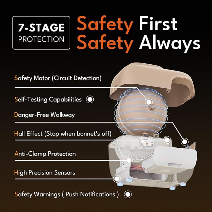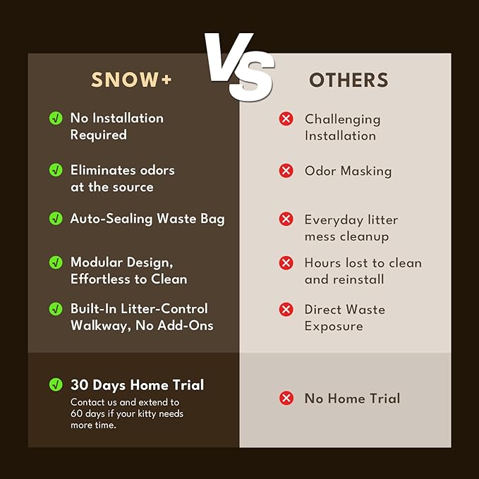 - 7-Stage Safety & 24/7 Support: SnowSafe+ technology immediately pauses cleaning when your cat enters. Backed by around-the-clock customer service for complete peace of mind.