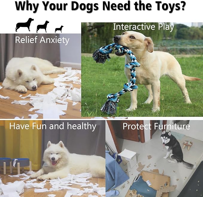 • HEAVY DUTY TOUGH ROPE TOYS: Designed for medium to large dogs and aggressive chewers, Our rope toy for dogs is nearly indestructible, more resistant and durable than our competitors, but in rare cases, extremely powerful chewer may destroy it, if that happens, please contact us and we will send you a replacement.