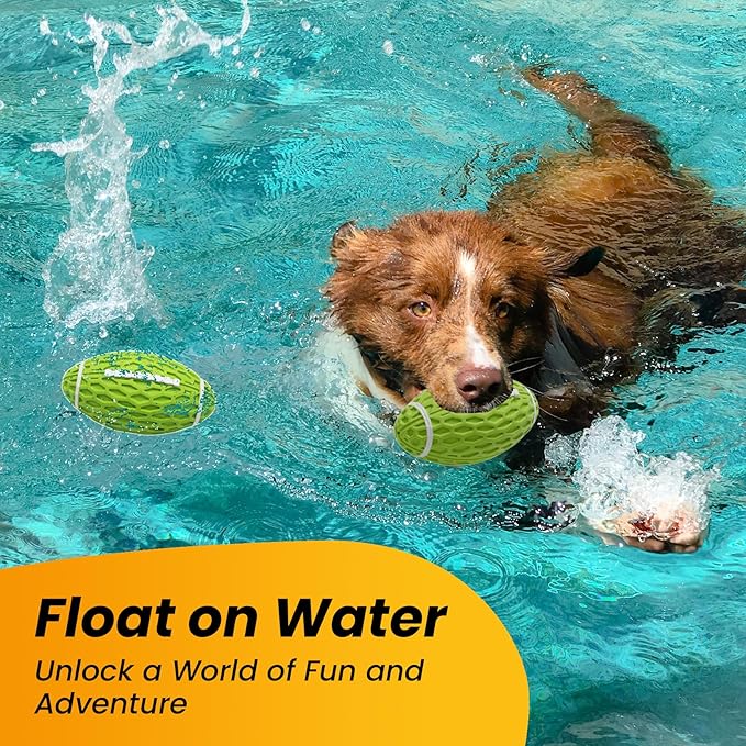 - Squeaky Dog Toy: This rubber football toy for dogs is not only durable but also cleverly designed with a built-in squeaker that emits a delightful squeak with every chew. Your pup will be endlessly entertained by this charming sound, keeping boredom at bay and making playtime a blast!