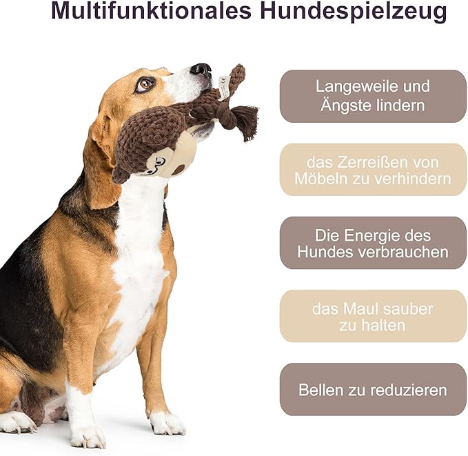 - Note: Not suitable for aggressive chewers. Don't let your pet play with the toy unsupervised. Toys are not edible, if your dog breaks the toy and accidentally eats the stuffing, please dispose of it promptly. If you have any problems with our products, please feel free to contact us for a refund or replacement