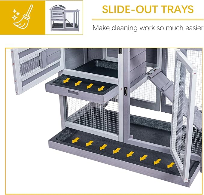 - đăEffortless Cleaningă- The large rabbit hutch includes a removable tray, simplifying cleanup. Slide out the tray, dispose of waste, and rinse it clean â maintaining a hygienic environment for your pets has never been easier.