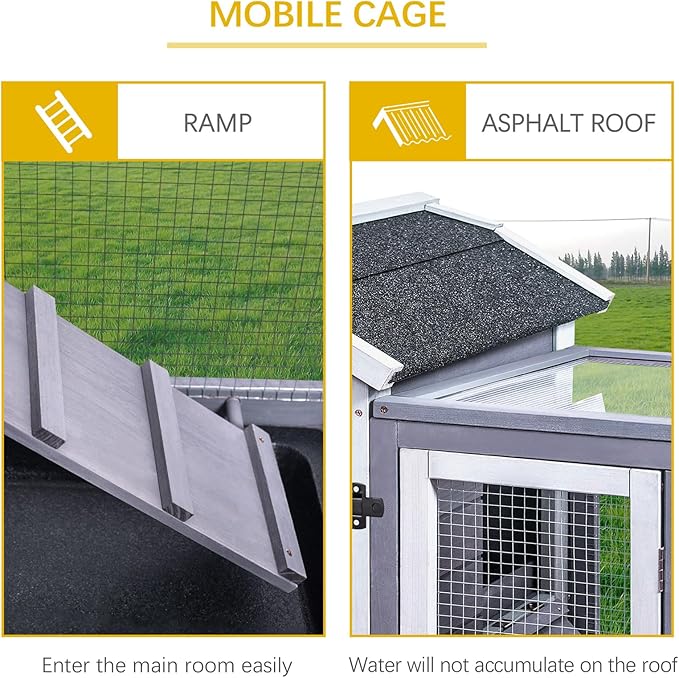 - đăSafe & Weatherproofă- Crafted with environmentally friendly waterproof varnish and cedar wood, this hutch is built for your pet's safety and comfort. Its asphalt roof shields your small pets from wind, rain, and snow, making it suitable for both indoor and outdoor use.