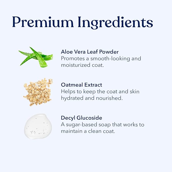 - Calming scent – Our subtle Oatmeal and Lavender fragrance can help calm your pet.