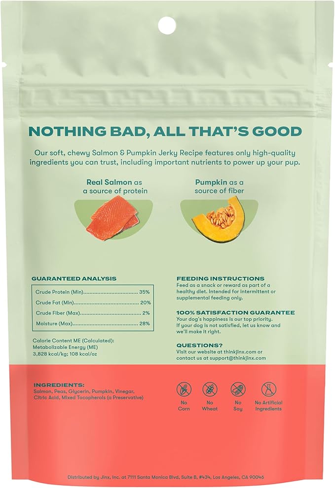 - ALL NATURAL INGREDIENTS: Real salmon is the first ingredient in our soft & chewy jerky dog treats. Jinx salmon tenders are packed with protein & flavor. Made with all-natural ingredients you can trust, carefully selected to provide a wholesome and delicious snacking experience.