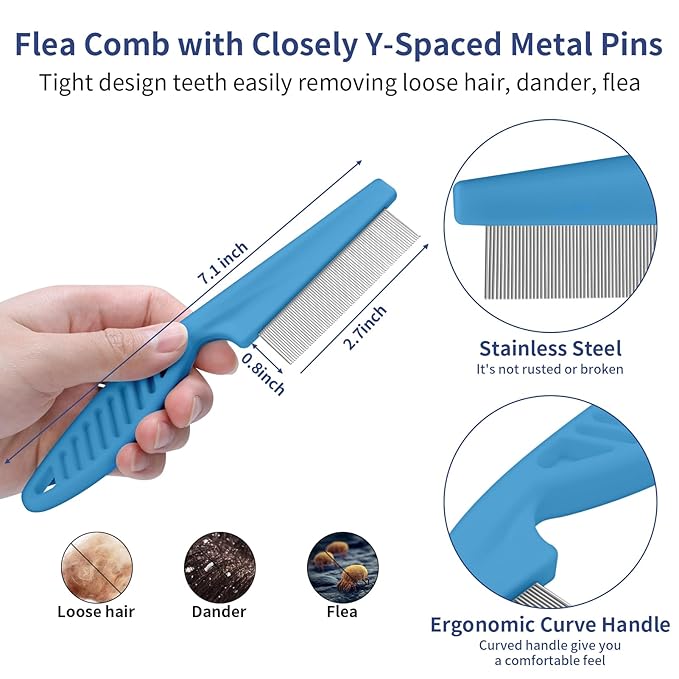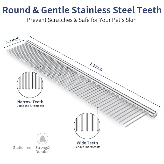 - [GENTLE & EFFECTIVE] Achieve gentle grooming and deshedding with a self cleaning slicker brush, rounded teeth rake, and comb. Soft bath head for tangle-free hair. Perfect for sensitive pets. Ergonomic design for comfort and control.