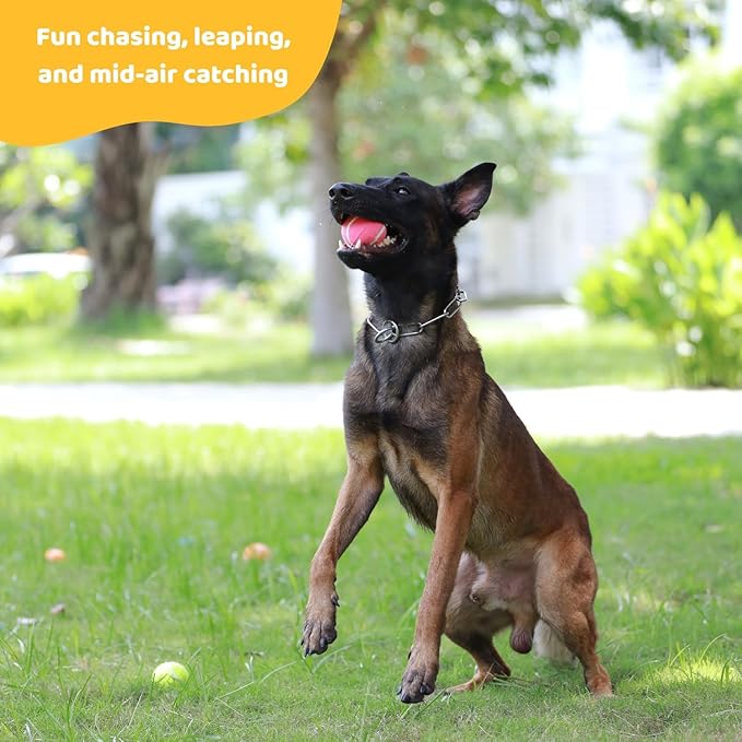 - 🎾 SQUEAKY SURPRISE: Get your dog's detective skills ready, because these tennis balls for dogs are hiding a secret – a built-in squeaker that'll keep your furry friend guessing! It's like a mystery that never gets old. Plus, this squeaker is no pushover; it's built to last with high-quality materials and keep your dog on the hunt.