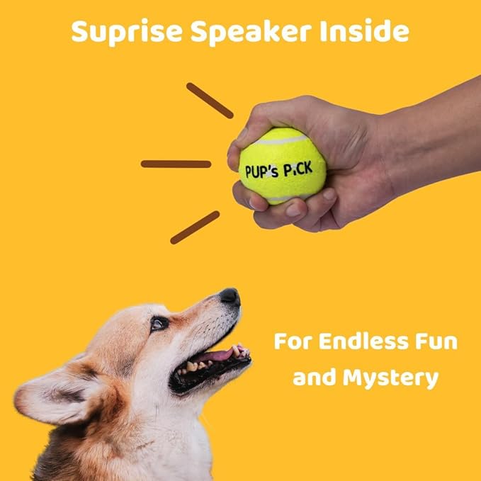 - 🐕 SAFETY AND SUPERPOWERS: Your pet's safety is our kryptonite. Pup’s Pick dog tennis balls are crafted from recycle natural rubber and tough, wear-resistant felt. They're the dynamic duo of safety, non-toxic and gentle on your dog's pearly whites. And with their air-hollow core, they're practically immortal, ensuring endless playtime adventures!