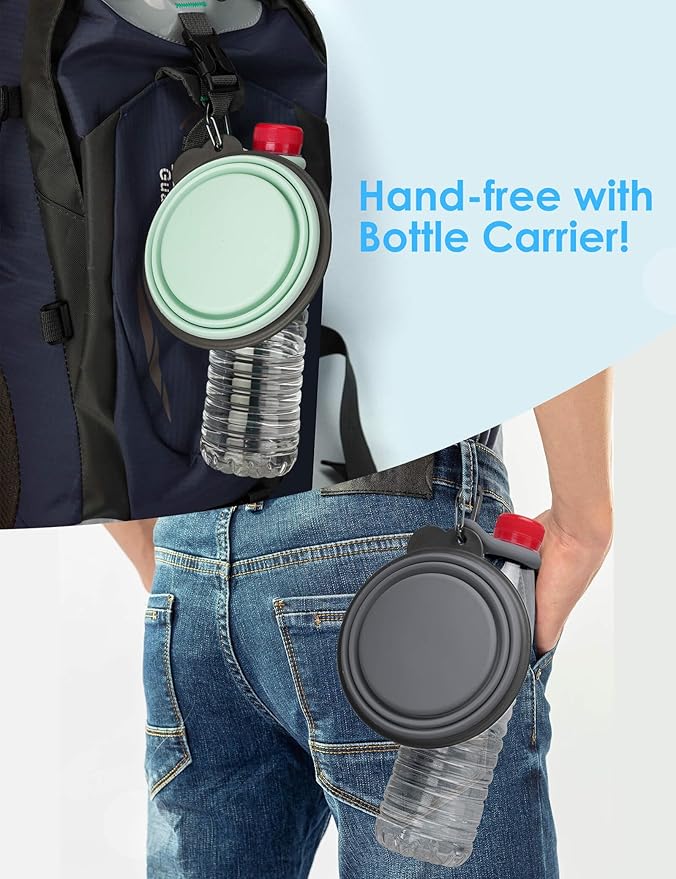 • 【Unique and Different】Aonkey dog bowl set is in a league of its own, addressing issues from feedback on other bowls. The upgraded carabiner boasts a larger, sturdier opening, reducing the risk of breakage. Plus, enjoy the added convenience of bottle carriers, compatible with most cola-shaped water bottles in the market.