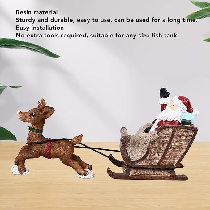 Focket Christmas Aquarium Decorations, Resin Santa Claus Reindeer Sleigh Fish Decoration, Decorative Aquarium Santa Claus on Sleigh Xmas Miniature Figurines Micro Landscape