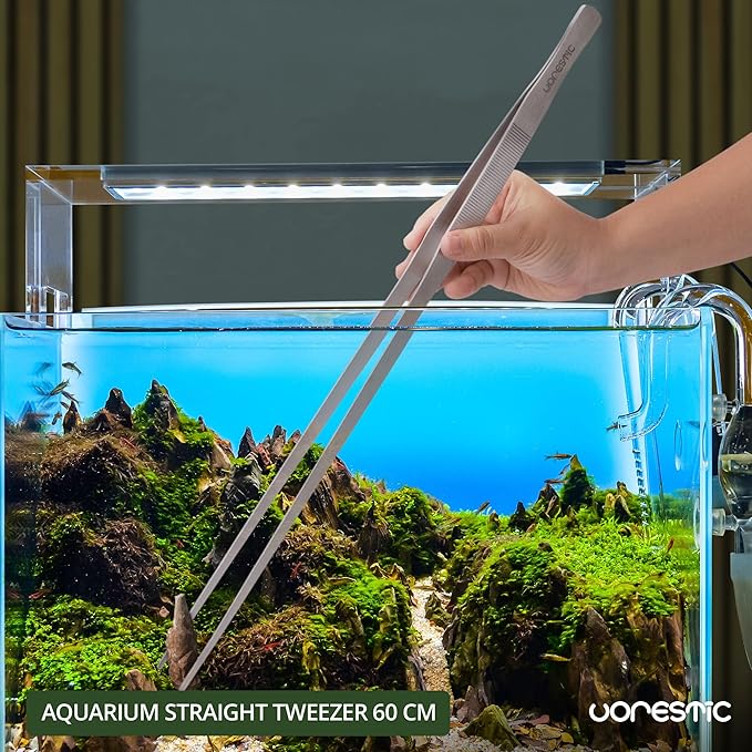 - Maintain a vigorous and thriving aquascape - this 23.6-inch curved aquarium tweezer is essential for your aquarium or terrarium feeding adventure! Whether it's in the detailed task of gently feeding your aquatic pets, ensuring your reptile buddiesare well-nourished, these aquarium tweezers serve as your dependable tool, providing precision and simplicity to your pet care routine.