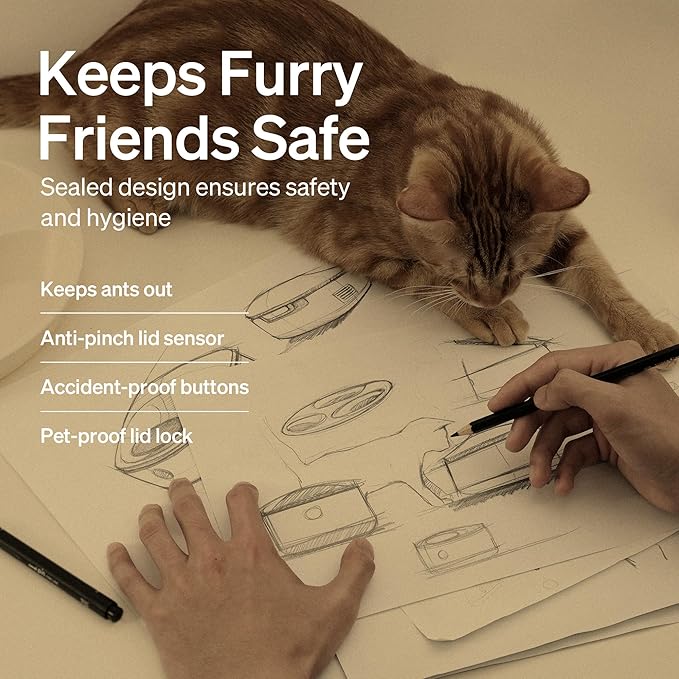- Excellent Sealing & Unique PawShield Design: Prevent naughty pets from sneaking in an extra snack with the PawShield design inspired by user feedback, This innovative design stops pets from lifting the lid intentionally or accidentally, protects food from intruding ants, and ensures that food remains secure with the optimal hygiene at all times. Additionally, this automatic cat feeder provides up to 3 meals (220ml max/meal) of wet food with high water content and low fat to maintain pet health