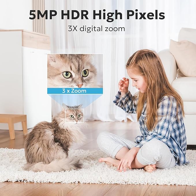 - 【5MP Super HD & Advanced Night Vision】Owltron indoor camera with 5MP HD resolution provides you a clear and vivid image quality and captures more details on your home anywhere during day and night by using 3X Digital Zoom. This indoor security camera has an enhanced night vision with effective distance up to 33 ft. (Note: Wired Indoor Camera, Not a Battery Camera)