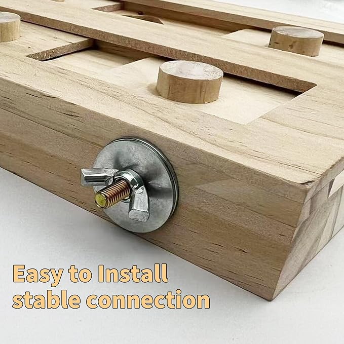 - Safe & Non-toxic Material: The parrot foraging box is made with natural wood. No glues or paints and won't do harm to the birds, parrots are safe to use. Easy to install with pre-set butterfly nuts.