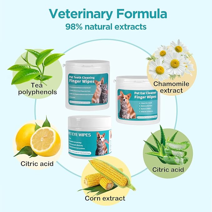 - 【Pet Cleaning Wipes Kit】 Soft finger wipes are easier and more flexible to wipe the hard-to-reach areas of your cat & dog's teeth and ear for more effectively removing bad breath and reduce foul ear odor and prevents infection to keeps your pet happy and healthy without Medication.