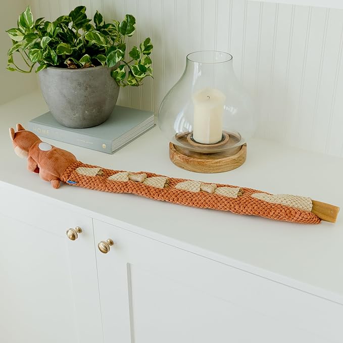 - š¶[Designed to Captivate Dogs for Hours on End] This dog toy puzzle stretches out to a fun-filled 29 inches, perfect for playing tug-of-war with your pooch; It's also crinkly, squeaky, and packed with snack pockets thatāll keep your furry friend engaged for hours