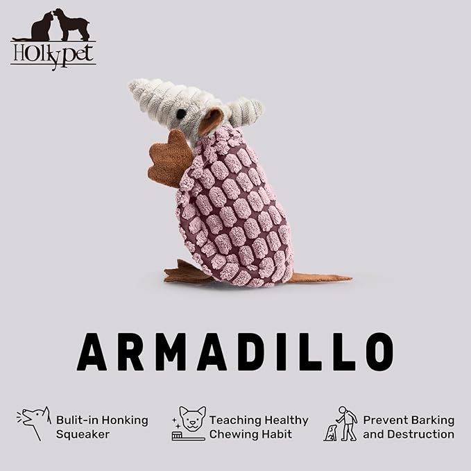 - Unique Sound - Hollypet Armadillo Squeak Toys (except 6 inch) make a sound that's not high pitched, but rather a unique and funny grunt sound that your furry friend will love. Unlike noisy bones, ropes, or other normal stuffed plush dog toys