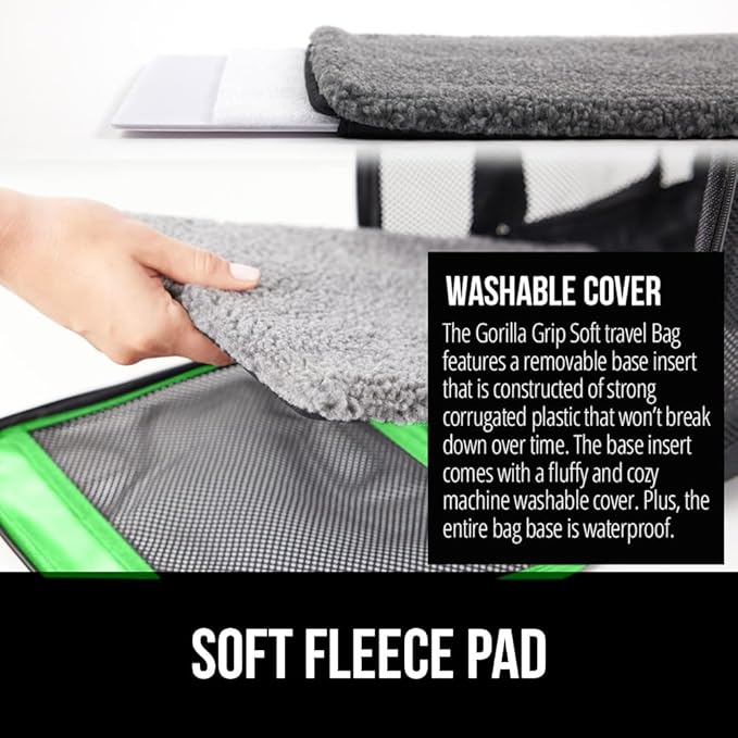 GORILLA GRIP Cat Carrier Travel Bag Up to 15 Lbs, Soft Collapsible Small Dog Carriers, Top and Side Entry Breathable Mesh, Grip Feet on Underside, Cozy Washable Waterproof Pad, Portable Kennel, Green