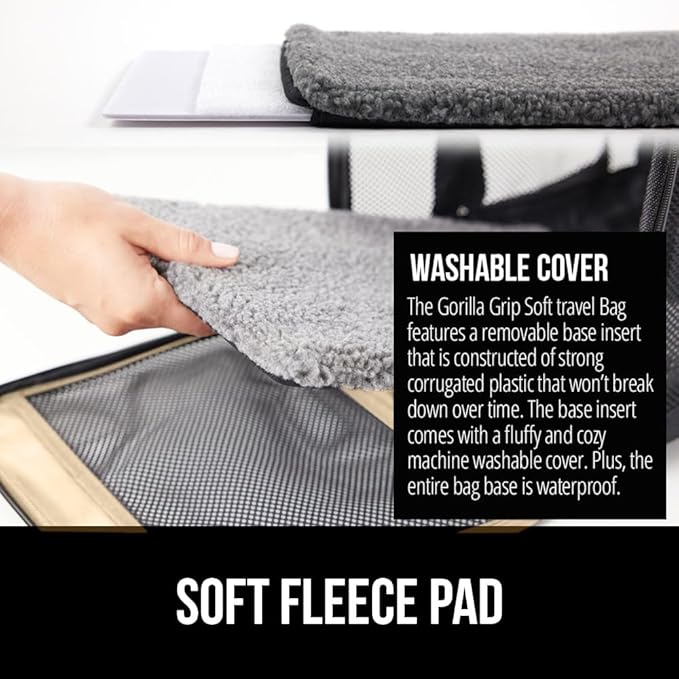 GORILLA GRIP Cat Carrier Travel Bag Up to 15 Lbs, Soft Collapsible Small Dog Carriers, Top and Side Entry Breathable Mesh, Grip Feet on Underside, Cozy Washable Waterproof Pad, Portable Kennel, Beige