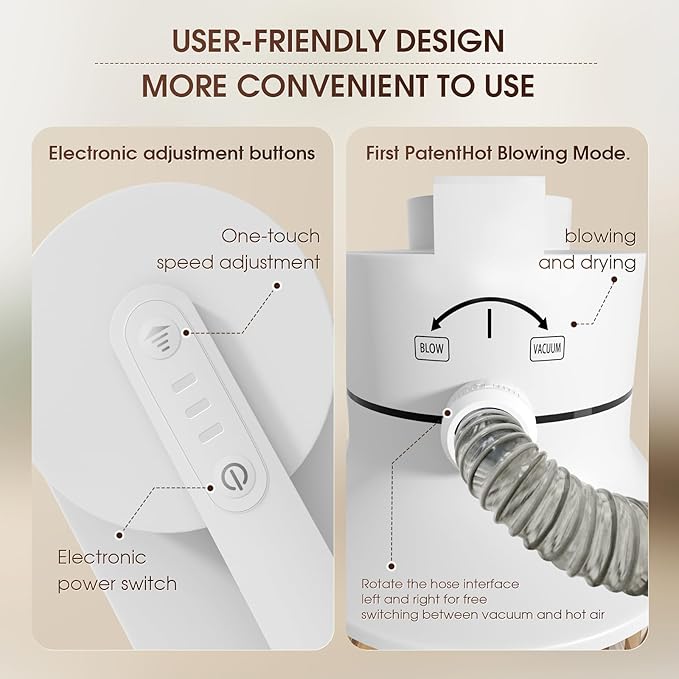 - đ¶ăAll-in-one Professional Groomingă:This grooming clipper comes with 6 proven tools: grooming and smoothing brushes to prevent damage to your pet's epidermis for softer, smoother and healthier skin and coat; motorized clippers for excellent clipping performance; nozzle and cleaning brush to collect pet hair from carpets, sofas, and floors, and a hot hair dryer to quickly blow-dry the fur!