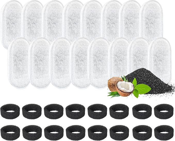 Cat Water Fountain Filter, 32 Pack Cat Fountain Filters, Cat Fountain Replacement Filter for 67oz/2L&108oz/3.2L Stainless Steel Pet Water Fountain (16 Filters & 16 Sponges)