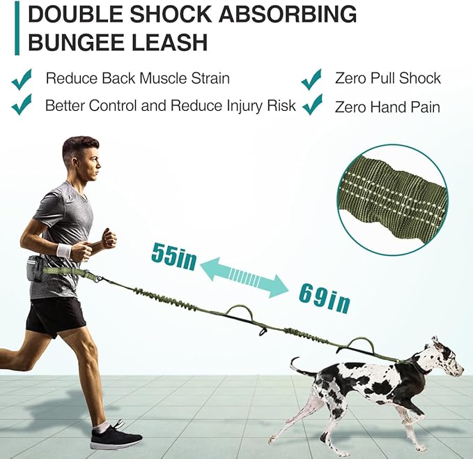 - 【Shock Absorbing Bungee Leash】- This running dog leash has double shock absorb, two separate bungees in the leash can absorb shock and pull force from dogs, perfect for pullers, gives you more leeway without feeling like your dog is going to topple you over