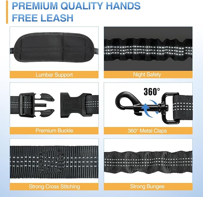 - 【Shock Absorbing Bungee Leash】- This running dog leash has double shock absorb, two separate bungees in the leash can absorb shock and pull force from dogs, perfect for pullers, gives you more leeway without feeling like your dog is going to topple you over