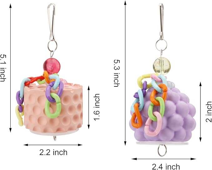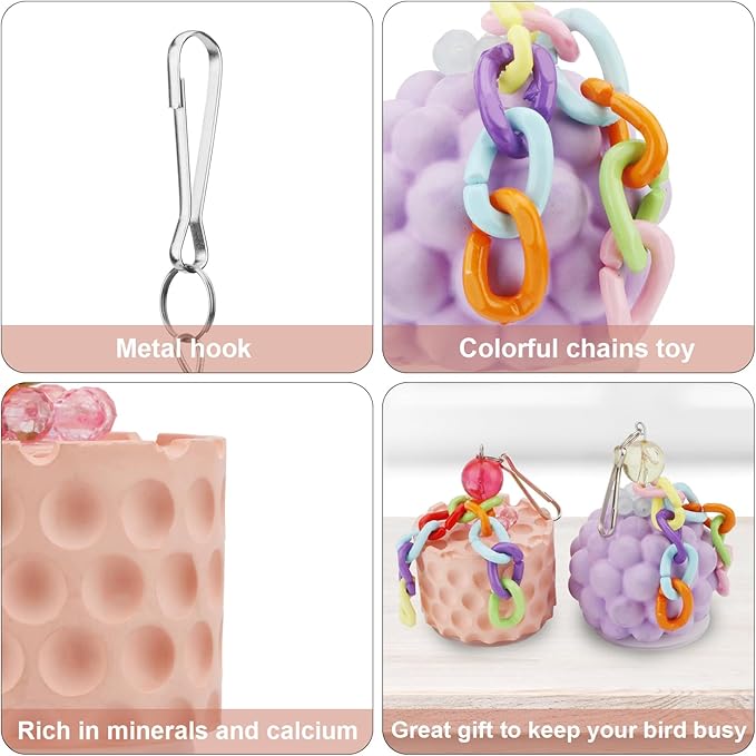 - Fun bird toys have bright colors that will attract the attention of feathered friends when you place the toy inside the bird cage. Uneven surface is designed for better trimming and cleaning of the bird's beak to keep the beak healthy