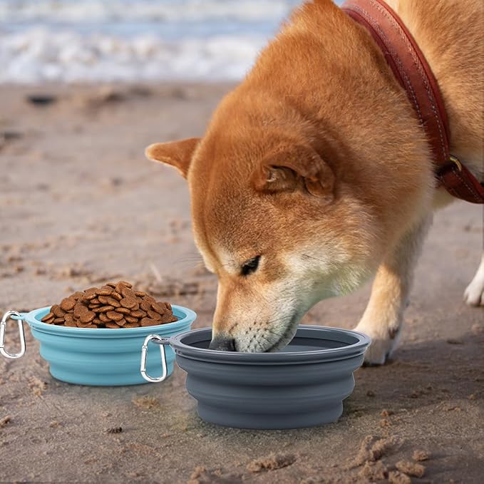 Kytely Collapsible Dog Bowls 2 Pack - 1500ml Portable Pet Food & Water Bowl for Travel, Hiking, Walking - Foldable Feeding Dish with Carabiner Clip for Dogs & Cats - X-Large (Blue & Grey)