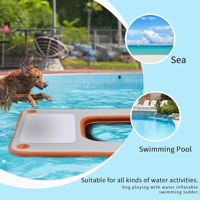 Inflatable Dock, Load-Bearing 200 pounds, Dog pet ramp, Suitable for Swimming Pools, Boat Docks, Lakes, Beach use Water Sports Platform.