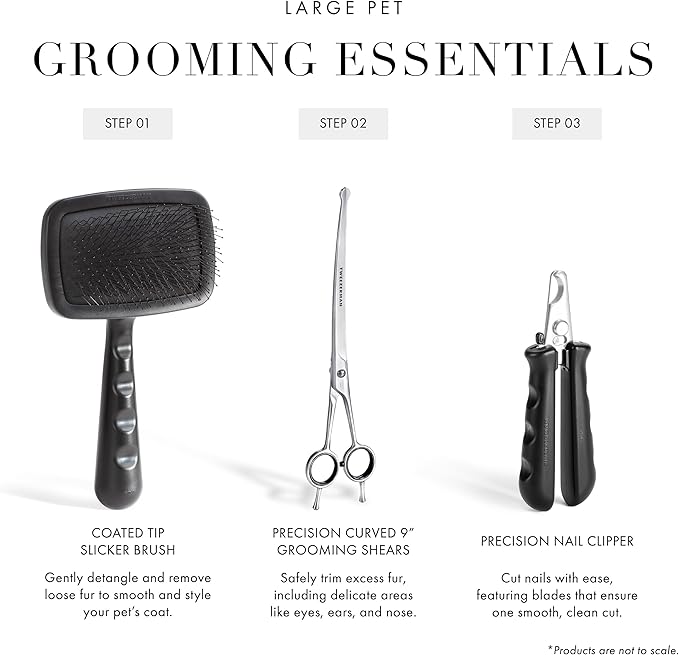 - These curved scissors for dog grooming feature rounded safety tips to prevent nicking the skin, eyes, nose, and ears. Lightweight design provides comfort and prevents hand fatigue while trimming. Curved blade guides shape for cutting. Ideal for at-home grooming or beginner professional groomers.