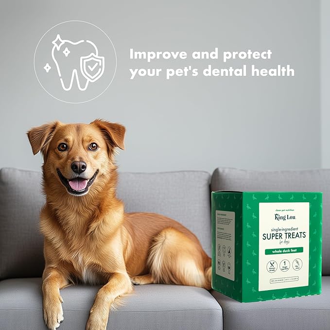 King Lou Pets - Whole Duck Feet for Dogs - Single Ingredient Treat - Dehydrated Dog Treats - USA-Made Dog and Cat Treats - Collagen, Glucosamine, Chondroitin for Hip and Joint Health - 40 Count