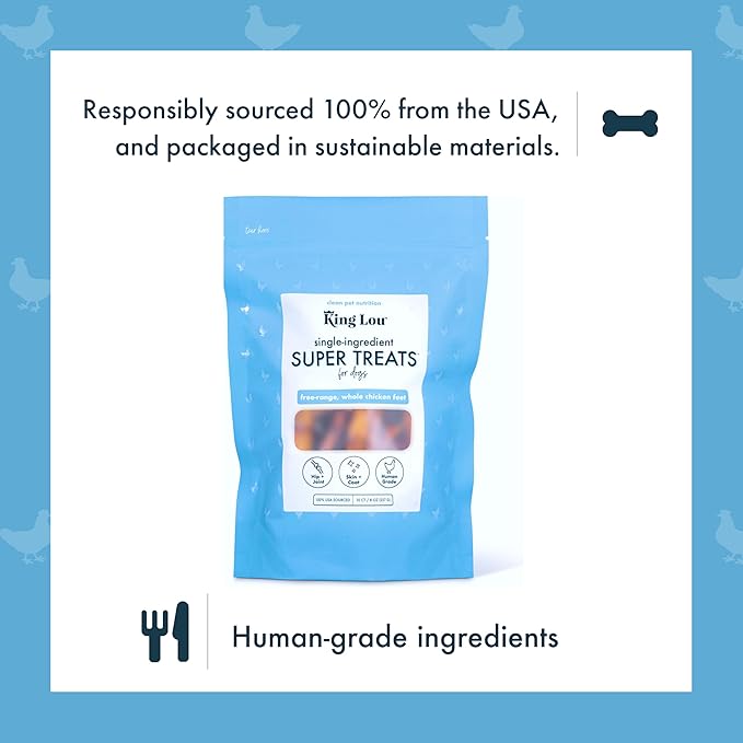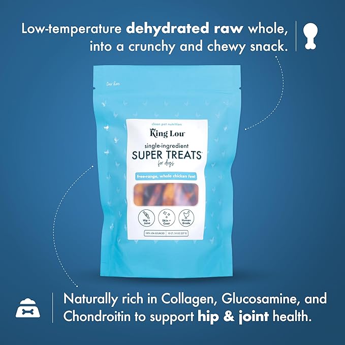 King Lou Pets - Whole Chicken Feet for Dog - Dehydrated Chicken Feet for Dog Treats - USA-Made Dental Treats for Dogs - Collagen, Glucosamine, Chondroitin for Hip and Joints - 10 Count
