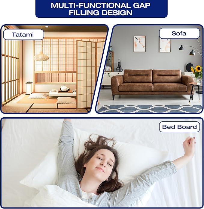 - Full bed wedge stopper effectively closes the troublesome 0-8 inches gap, ensuring you have a comfortable sleep at night. No more searching for lost stuff underside of the bed or incessant readjusting your pillows!