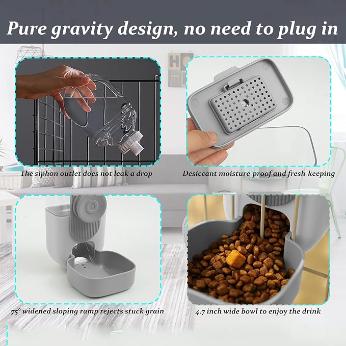 Kenond Hanging Automatic Food Water Dispenser, 35oz Rabbit Feeder Guinea Pig Water Bottle Feeder for Ferret Guinea Pig Rabbit Bunny Cage Accessories(Gray)