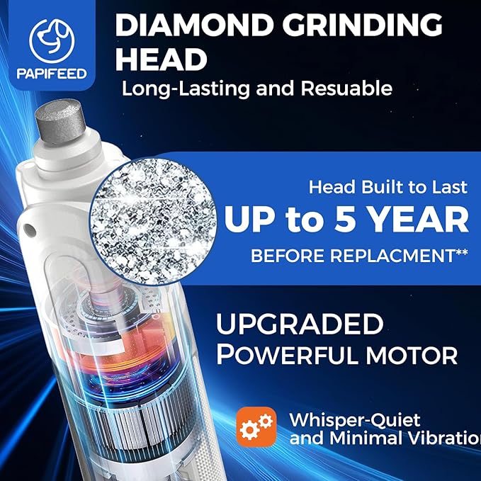 - 【6-Speed Precision】PAPIFEED dog nail grinder is designed for dogs of different sizes. The 6-speed adjustable speed allows you to easily meet the nail grinding needs of puppies to large dogs. The low speed protects sensitive pets, while the high speed polishes quickly, helping dogs gradually adapt to the nail grinding process and say goodbye to the shock and risks of traditional scissors.