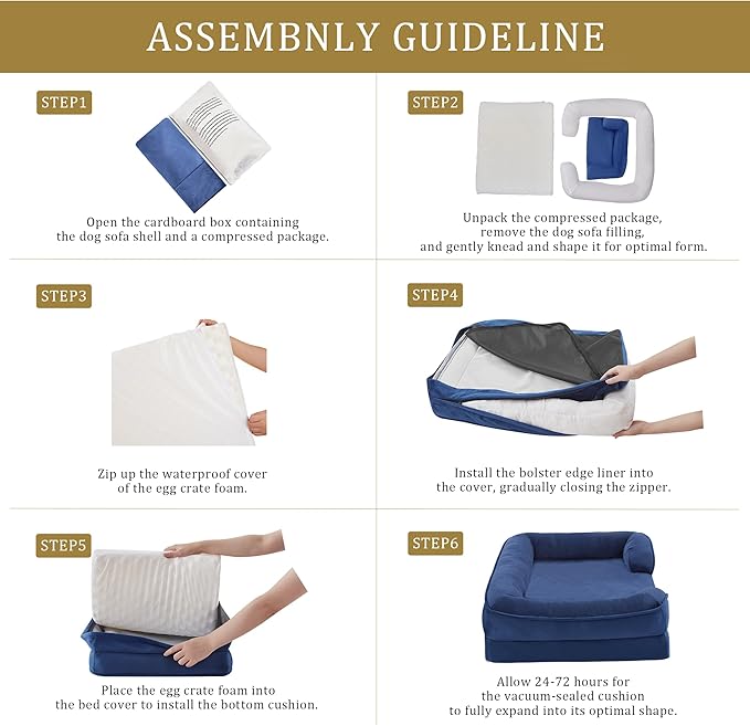 Bedfolks Orthopedic Dog Bed, Waterproof Dog Sofa Bed for Extra Large Dogs, Egg Foam Pet Couch Bed with Removable Washable Cover and Nonslip Bottom, Navy Blue