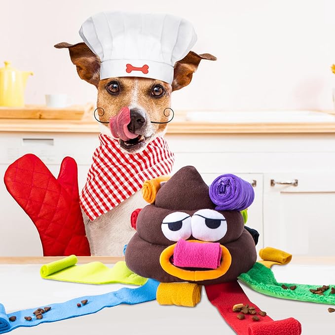 - 【Safe, Easy To Clean and Use】Made of high-quality materials, our poop sniffing toy is comfortable to touch, strong and durable.It can be hand washed or machine washed and is not easy to deform. It is very suitable for your dog to play or feed, and there is no safety problem for long-term use.The added 6 extra textured food hiding cloth strips give the dog puzzle toy more entertainment and exploration.