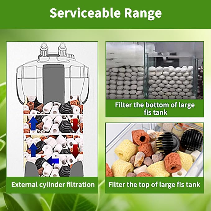 - Warm Reminder: When the product is updated, the filter media such as aquarium ceramic ring and bio ball may be slightly changed. Before use it, must rinse with clean water first, it is very important