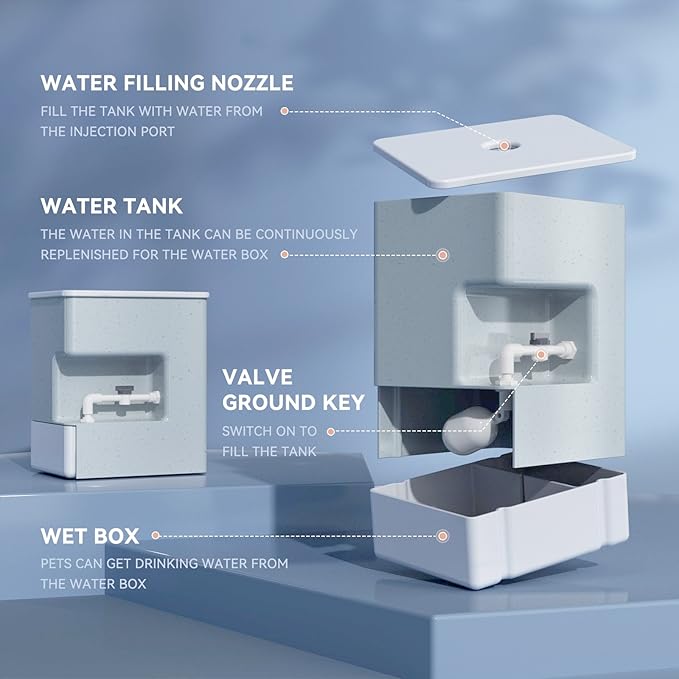 - 【Automatic water replenishment without electric gravity】 When the pet uses up the water in the base, the water in the tank will automatically fill the base through gravity. The entire process does not require any operation, just add water regularly. The water dispenser can be used directly without the need for power, charging, or plugging in, which is very convenient