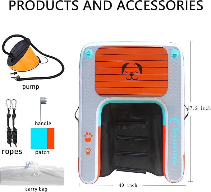 Inflatable Dock, Load-Bearing 200 pounds, Dog pet ramp, Suitable for Swimming Pools, Boat Docks, Lakes, Beach use Water Sports Platform.