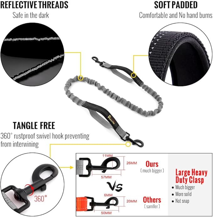 Plutus Pet Hands Free Dog Leash, Soft Padded Dual Handle Retractable Bungee Leash with Reflective Stitches, Adjustable Wasit Leash for Dog Walking Running Jogging, for Medium Large Dogs