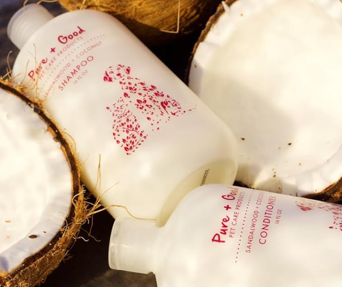 Sandalwood + Coconut Shampoo and Conditioner Set, Warm and Mellow Sandalwood with Coastal Coconuts, Formulated for All Pets, Gentle and Cleansing, Made in The USA, Cruelty Free, 16 fl oz