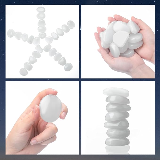 - DIY Fun: our glow rocks offer endless possibilities for creativity; The white color and the blue glow that they emit at night create a magical ambience that is ideal for any holiday decor; You can arrange these glow in the dark pebbles into different shapes and patterns, making a special decoration for Christmas, Halloween, and other festivals; Enjoy diy fun with family and friends with these large aquarium rocks