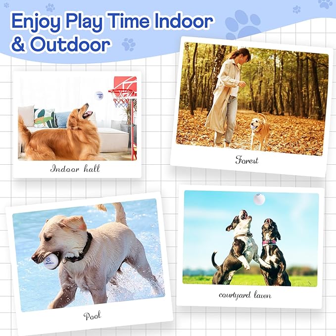 - [ Indoors & Outdoors Dog Ball Toys]: These bouncy and easy-to-wash dog balls are perfect for both indoor and outdoor activities. They help relieve anxiety, provide daily training, and release energy, keeping your dog happy and healthy. Lightweight and floatable, they're great for playing on grasslands, beaches, and even in swimming pools.