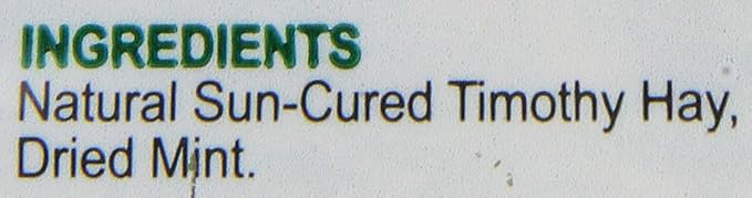 • Long strand timothy hay plus spearmint to provide a variety of textures and flavors for added enrichment