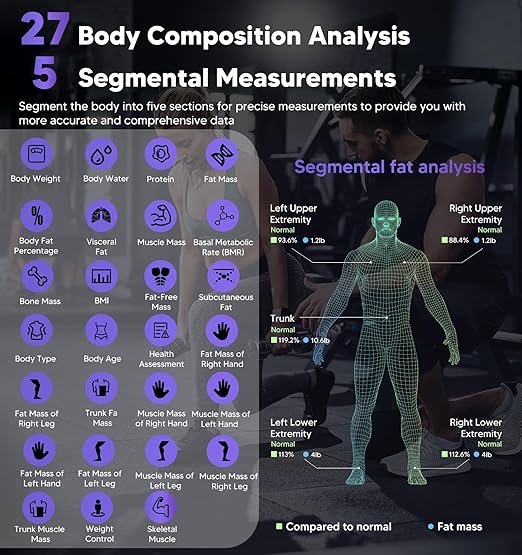 - COMPREHENSIVE AND HIGHLY ACCURATE: The GE smart scale utilizes 8-electrode dual-frequency and segmental BIA technology, segmenting the body into five sections(four limbs and torso) for precise measurements to provide you with more accurate and comprehensive body composition data