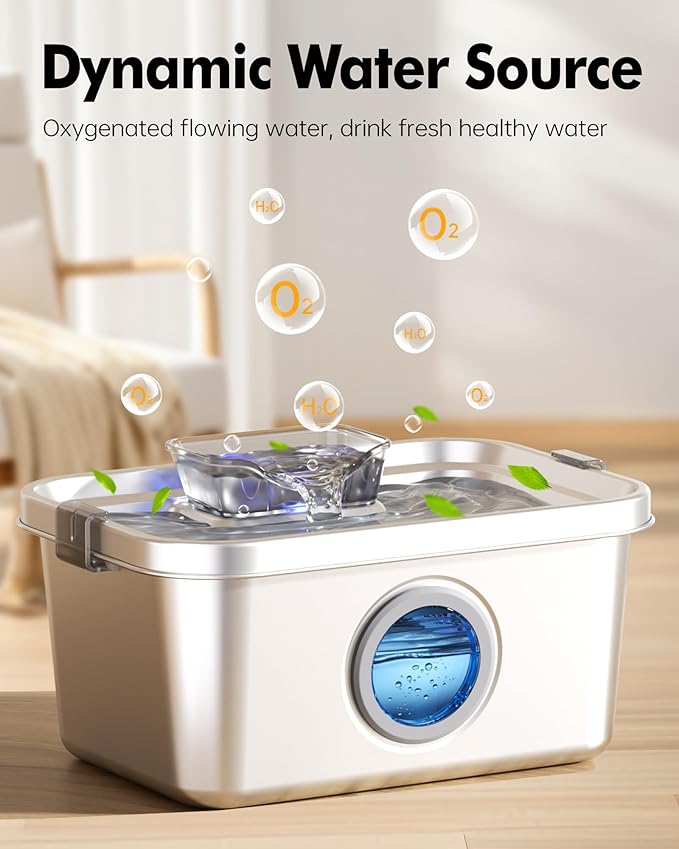 - 【Water Level Window & 304 Stainless Steel】The stainless steel dog water fountain with big window allows you to monitor the water level at all times. It is crafted from genuine 304 stainless steel,BPA-free, offering superior longevity, safety, and sturdier than plastic pet fountains. Most importantly, it withstands high-temperature dishwasher cleaning, ensuring that your furry baby's water is always healthy and safe