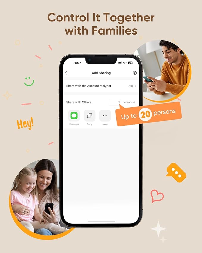 - Smart APP Control: Molypet automatic cat feeder can connect to 5GHz and 2.4GHz WiFi network. You can set up a feeding plan and schedule up to 10 meals per day with 1-50 portions per meal for your pets through the smart APP, which means never miss a meal of your pets