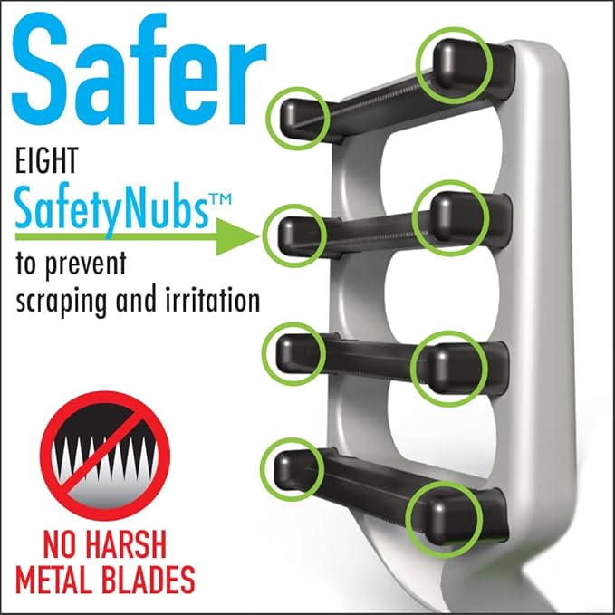 - Safer: Eight SafetyNubs prevent scraping and damage to your pet’s skin. Unlike other dog deShedding tools that use harsh metal blades, FUR4 uses an advanced composite carbon fiber for a safer deShedding experience.