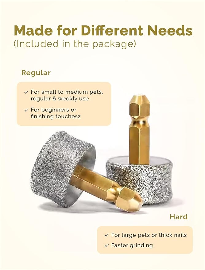 - Upgraded Dust Cap & Reliable Diamond Bit: The included removable dust cap allows you to easily collect and dispose of nail dust and debris while groom, and protects your pet's eyes from shavings. Pedgogo dog nail grinder is made of advanced diamond bit to deliver powerful and quick grinding experience. Two extra diamond bits are included for easy replacement.